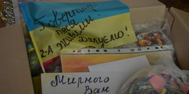Сергею Бучковскому передали письма для военных, плетеные браслеты - обереги, собрали деньги на необходимые вещи и расписали пожеланиями украинский флаг, который, там, в зоне проведения АТО напоминать военным, что их ждут на родной Житомирщине, в родном городе, живыми, здоровыми и победителями .