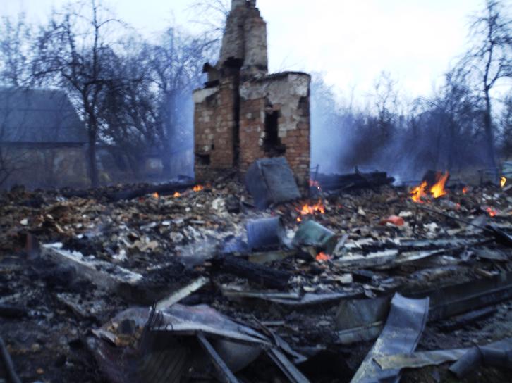 На момент прибытия пожарного подразделения выяснилось, что на дворе огнем полностью были охвачены два деревянных дома. Площадь пожара составила около 200 кв. м. Возгорание возникло в старом нежилом здании и за сильных порывов ветра огонь быстро перекинулся на рядом расположенный деревянный двухэтажный жилой дом, в котором находилось 4 человека. Сообщение к спасателям Брусилова из-за проблем с мобильной связью поступило со значительным опозданием.