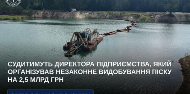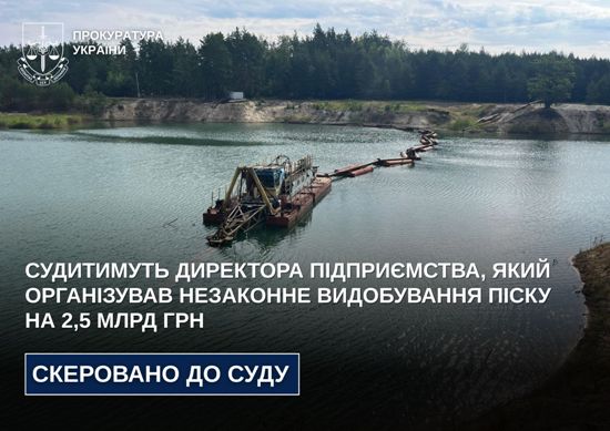 За матеріалами Спеціалізованої екологічної прокуратури, директор господарського товариства, що має спеціальний дозвіл на видобування піску, розпочав видобувати корисну копалину за межами дозволеної території та гірничого відводу.