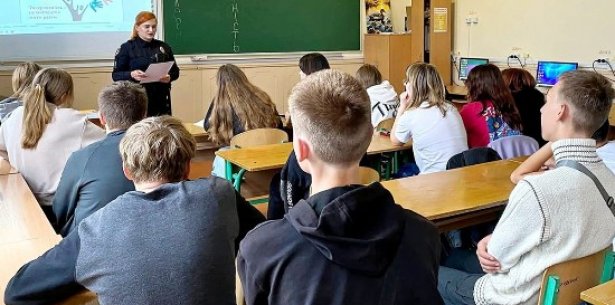 Днями інспекторка сектору освітньої безпеки Бердичівського райвідділу поліції Вікторія Пашківська провела тематичну виховну годину для учнів старших класів у Бердичівському міському ліцеї № 15.