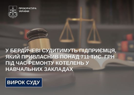 За процесуального керівництва ювенальних прокурорів Бердичівської окружної прокуратури до суду скеровано обвинувальний акт стосовно підприємця за фактом заволодіння коштами місцевих бюджетів територіальних громад (ч. 4 ст. 191 КК України).