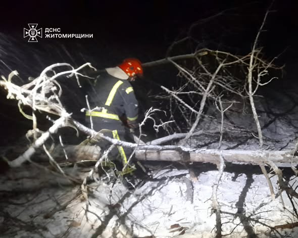 Учора ввечері рятувальники отримали повідомлення про те, що поблизу траси за межами села Павелки Бердичівського району впало дерево та перекрило проїжджу частину дороги.