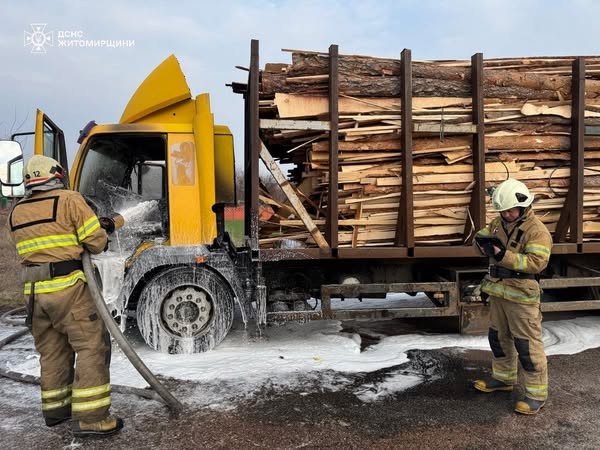 27 березня поблизу с. Підруддя Коростенського району загорівся вантажний автомобіль. Ймовірна причина – коротке замкнення електропроводки. Вогонь охопив двигун і кабіну, існувала загроза займання деревини в причепі.