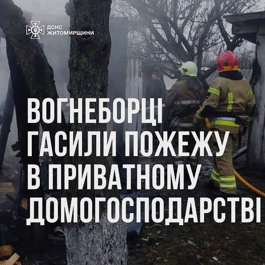 Сьогодні вдень вогнеборці гасили пожежу в приватному домогосподарстві у с. Зубковичі Коростенського району.