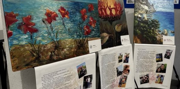 У поліції Житомирщини презентували виставку «Палітра пам’яті», створену родинами загиблих оборонців Маріуполя