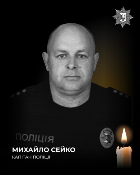 Капітан поліції Михайло Сейко, спецпризначенець стрілецького батальйону ГУНП в Житомирській області, загинув 22 серпня на Донеччині, під час ворожого ракетного обстрілу.
