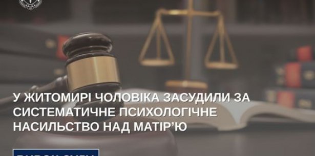 У Житомирі чоловіка засудили за систематичне психологічне насильство над матір’ю