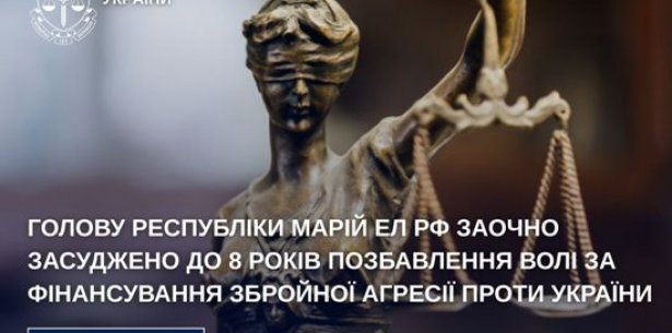 За підтримання публічного обвинувачення прокурорами Житомирської обласної прокуратури заочно засуджено голову Республіки Марій Ел рф за неодноразове фінансування дій, вчинених з метою насильницького повалення конституційного ладу (ч. ч. 2, 3 ст. 110-2 КК України).