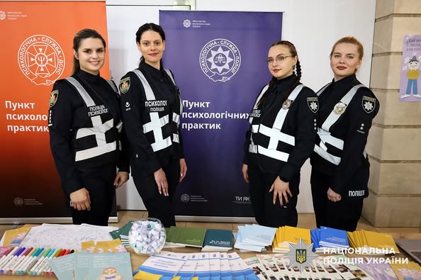 Психологи Управління кадрового забезпечення ГУНП Житомирщини дарували дітям та дорослим брошури з корисною інформацією про психологічну підтримку в різних ситуаціях. Також вони надавали консультації з питань подолання стресу, навчали навичок психологічної самодопомоги тощо.