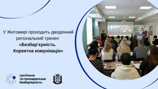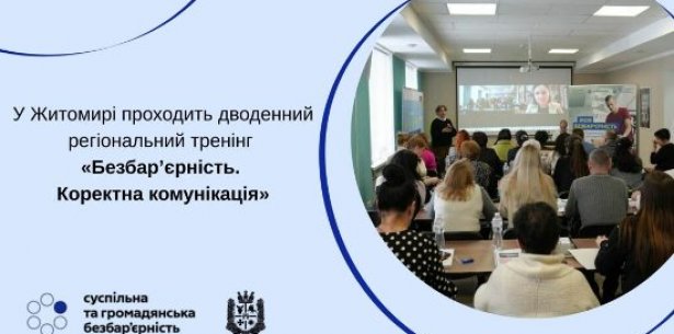 У Житомирі продовжується дводенний регіональний тренінг «Безбар’єрність. Коректна комунікація», що проводиться в межах ініціативи першої леді України Олена Зеленська. Захід об’єднав представників органів місцевого самоврядування, ветеранської спільноти, а також фахівців, які у своїй щоденній роботі взаємодіють із різними групами населення.