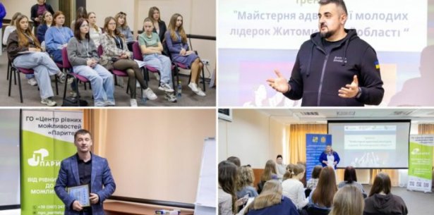 Проєкт «Майстерня адвокації молодих лідерок Житомирської області» реалізовується громадською організацією «Центр рівних можливостей «Паритет» у співпраці з Управлінням національно-патріотичного виховання, молоді та спорту Житомирської ОВА. Його мета — посилити спроможність молодих жінок віком 18–35 років до активної участі у громадському житті та процесах прийняття рішень на місцевому та обласному рівнях.