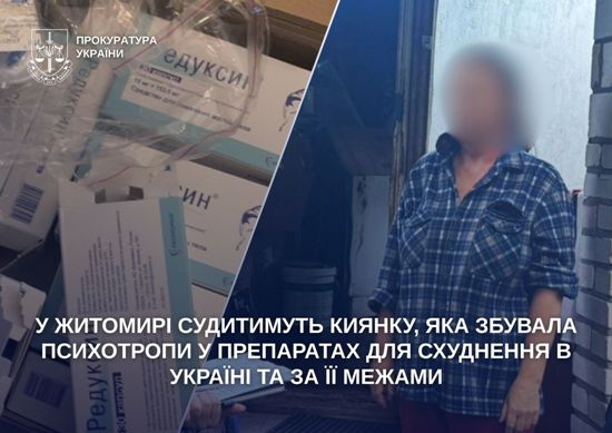 Днями прокурори Житомирської обласної прокуратури скерували до суду обвинувальний акт стосовно жительки Києва, яка організувала постачання з-за кордону та подальший збут психотропної речовини «сибутрамін» у складі капсул для схуднення, який виробляється в російській федерації.