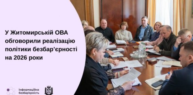 17 березня під головуванням заступника начальника Житомирської обласної військової адміністрації Віктора Градівського відбулася робоча нарада щодо реалізації Плану заходів на 2025–2026 роки з реалізації Національної стратегії зі створення безбар’єрного простору в Україні до 2030 року в Житомирській області.