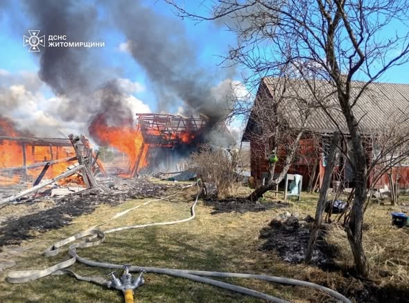 Вчора в селі Цеберка Житомирського району рятувальники загасили пожежу, що спалахнула на території приватного домоволодіння. Вогонь охопив деревʼяну господарчу споруду та через щільність розташування забудов також поширився на дві сусідні споруди. Існувала загроза розповсюдження полум’я і на житловий будинок.