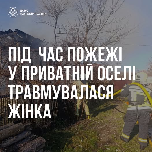 У Житомирському районі під час пожежі у приватному будинку травмувалася жінка