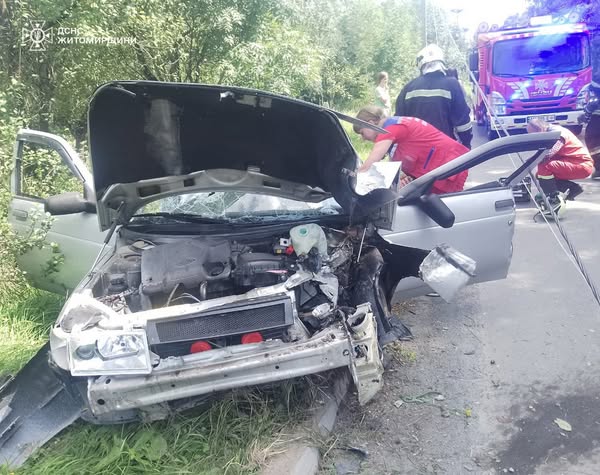 У Житомирському районі рятувальники деблокували травмованого водія з пошкодженого внаслідок ДТП легковика
