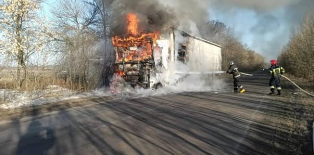 Сьогодні вранці на дорозі поблизу с. Теснівка Житомирського району виникла пожежа у вантажному автомобілі.