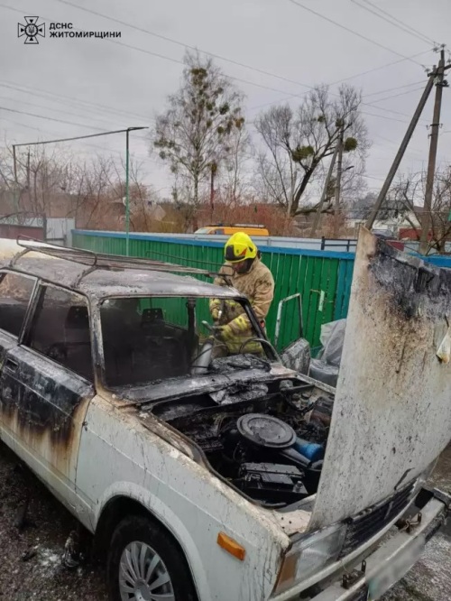 11 грудня о 14:03 до Служби порятунку «101» надійшло повідомлення про загоряння легкового автомобіля, що знаходився на приватній ділянці у селищі Миропіль Житомирського району.