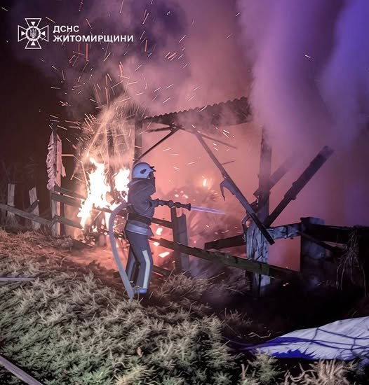 29 листопада о 21:26 до Служби порятунку «101» надійшло повідомлення про пожежу в дерев'яній споруді для зберігання сіна в с. Заболоть Житомирського району.