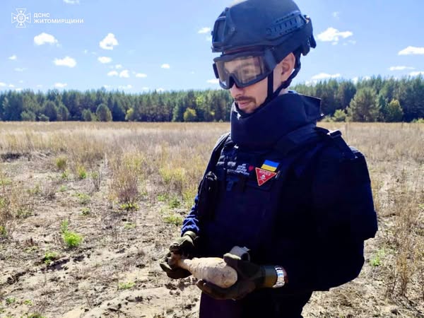 Так, сьогодні ними знешкоджено мінометну міну часів Другої світової війни, що була виявлена напередодні фермером на полі поблизу с. Мала Рача Радомишльської громади Житомирського району.