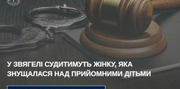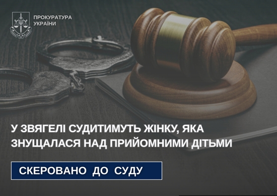 Керівник Звягельської окружної прокуратури скерував до суду обвинувальний акт відносно місцевої мешканки за фактом вчинення злочинів проти життя та здоров’я відносно двох малолітніх прийомних дітей (ст. 126-1, ч. 1 ст. 127, ст. 167 КК України).