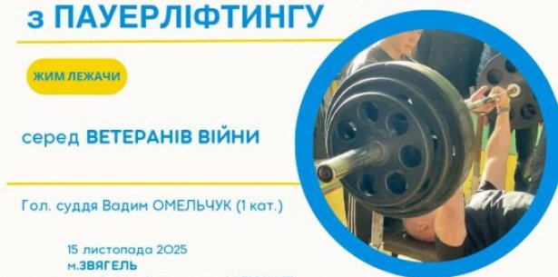 У Зягелі відбудеться чемпіонат Житомирської області з пауерліфтингу серед ветеранів війни