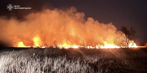 Попри зниження температури на Житомирщині фіксуються пожежі на відкритих територіях. Так, за минулу добу сталося п'ять загорянь сухої трави, чотири з яких — у Коростенському районі. Найбільша пожежа виникла в селі Каленське, де вогонь охопив 2,9 га території. У всіх випадках полум’я загрожувало житловим будинкам і господарчим спорудам.