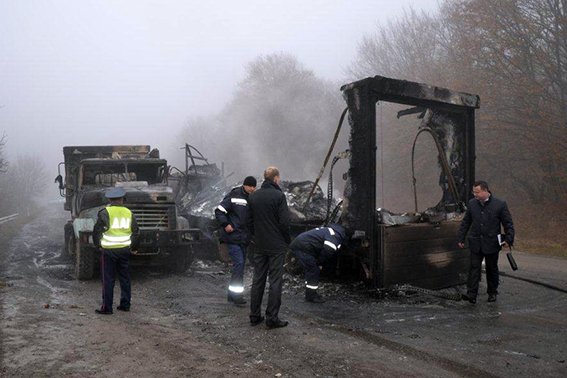 В результате столкновения автомобиль «МАN» загорелся. Водителя не удалось извлечь из кабины и он, к сожалению, сгорел заживо. Сгорели также документы и номера автомобиля, поэтому правоохранители работают над установлением личности водителя грузовика. Мужчина, который находился за рулем «КрАЗа» не пострадал.