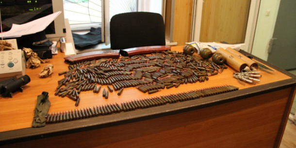 Вчера в 17 часов вечера сводный отряд транспортных милиционеров Приднепровской и Одесской железных дорог в помещении суточных касс в городе Днепропетровск обнаружили и задержали двух молодых людей в камуфляжной форме. При проведении досмотра личных вещей в присутствии понятых было изъято около 500 патронов к автомату Калашникова, дымовые шашки, четыре гранаты РГД-5, четыре запалы к ним и два магазина к ручному пулемету Калашникова.