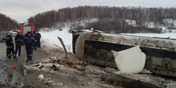 Харьковская область, новости - 13 января, в 13:00 в Службу спасения "101" поступило сообщение о том, что по адресу: Харьковская область, Змиевской район, на 3-м километре трассы Змиев - Балаклея вблизи с. Задонецкое произошло дорожно-транспортное происшествие. Бензовоз DAF съехал с дороги в кювет на поле и перевернулся. Автомобиль направлялся из города Житомир в город Северодонецк Луганской области.