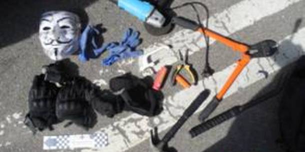 Кроме того, было проведено санкционированные обыски: в гаражном помещении, на квартире организатора и на автостоянке, где изъято мобильные телефоны, видеорегистраторы, банковские карточки, ноутбук, камуфляжную форму, бронежилеты, государственные номерные знаки, радиостанции, милицейские нашивки, ножи охотничьи, газовые баллончики, милицейские комплекты защиты на руки и ноги, пневматический пистолет, диктофон, бинокль, скотч, веревки, шашки такси, кобуру под пистолет Макарова, патроны «Флобер» и другие вещи.