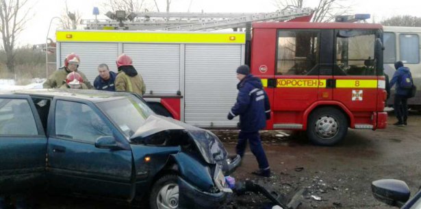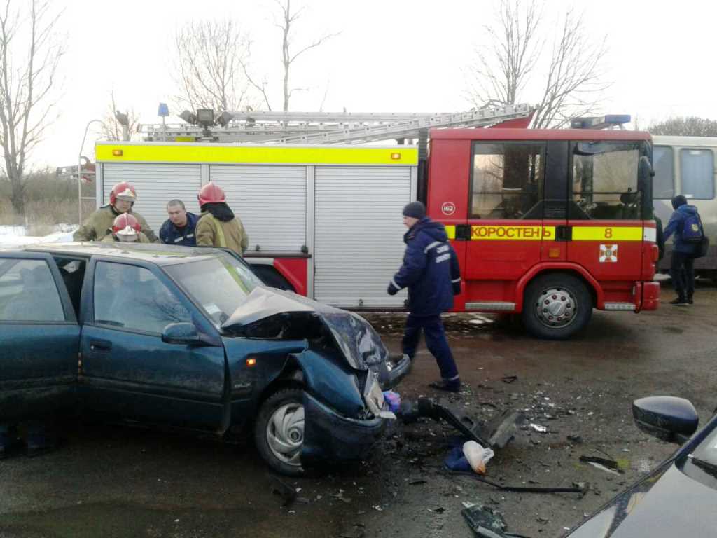 В Коростені рятувальники деблокували травмованих людей із понівечених легковиків