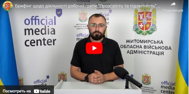 Нагадаємо, що робоча група «Прозорість та Підзвітність» при Житомирській обласній військовій адміністрації запровадила прийом повідомлень про можливе нецільове використання бюджетних коштів в умовах воєнного стану.