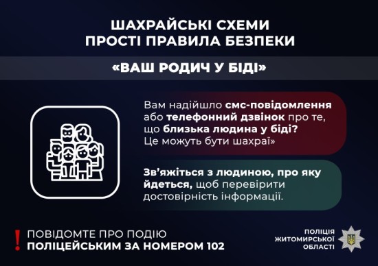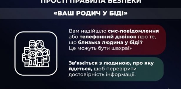 Водночас поліцейські нагадують: якщо вам надійшов подібний дзвінок, необхідно зв’язатись з родичем або тими людьми, які можуть бути поруч із ним та перевірити отриману інформацію.