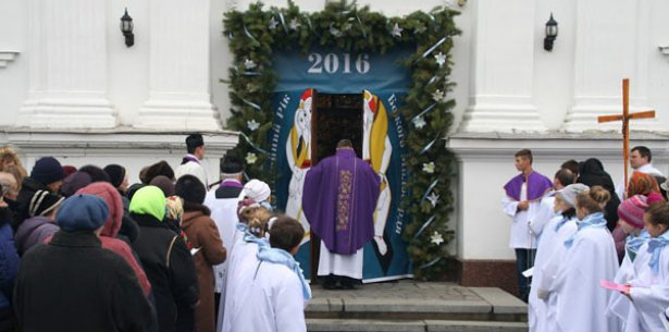 Коростишів, новини - 20 грудня кілька сотень коростишівцв зібралися перед входом до Коростишівського костелу Різдва Діви Марії, щоб взяти участь у заході відкриття ювілейних дверей Божого Милосердя.