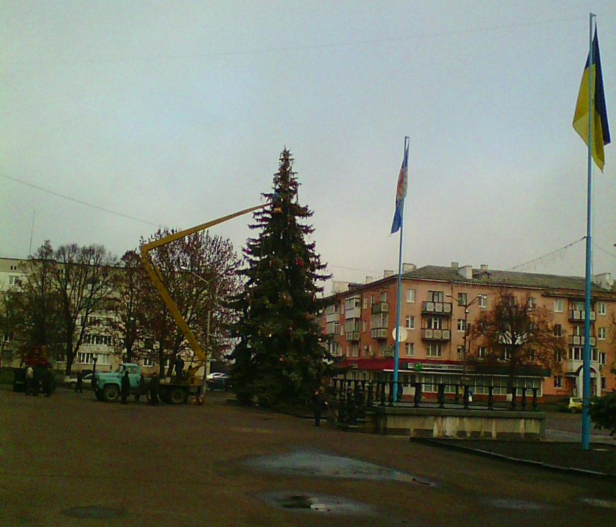 Приємно, що в місті почав укорінюватись звичай наряджати вічнозелену красуню, що росте навпроти районного будинку культури. Такі дії міської влади економлять бюджетні кошти, а також зберігають від вирубки лісові насадження. Наряджена ялинка належить до рідкісної породи вічнозелених красунь.