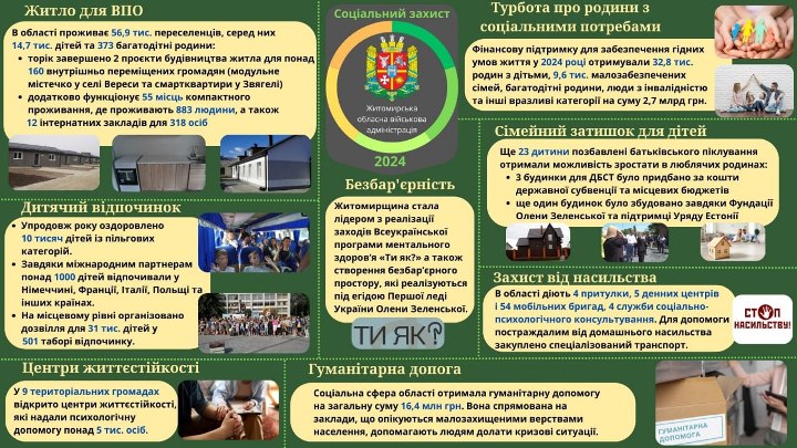 Житомирська ОВА продовжує працювати над тим, щоб кожен, хто цього потребує отримував належну підтримку. Особлива увага приділяється дітям, літнім людям, людям з інвалідністю, багатодітним сім’ям, ветеранам та переселенцям.