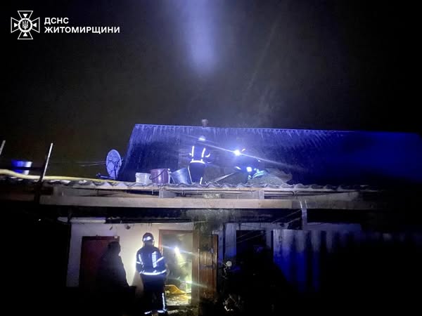Також вночі рятувальники ліквідували загорання оселі у селищі Кам‘яний Брід Довбиської громади Звягельського району. Ймовірно зайнялось через порушення правил пожежної безпеки при влаштуванні пічного опалення.