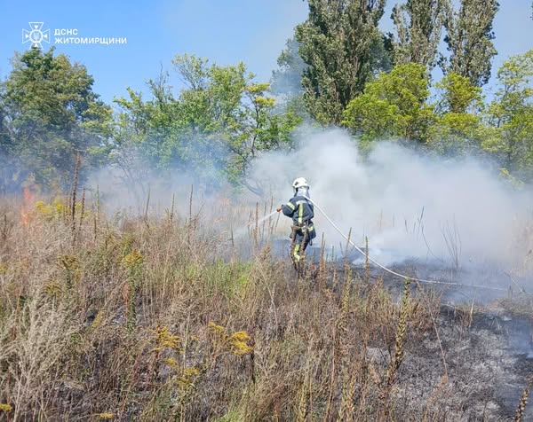 Три рази горіла суха рослинність в населених пунктах Житомирського та Бердичівського районів. Бійці ДСНС запобігли поширенню полум’я на більшу площу.