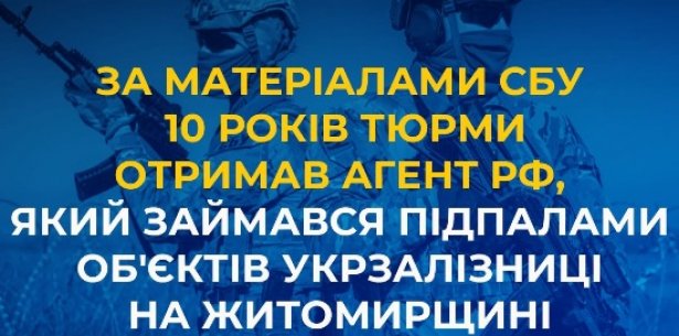 За доказовою базою Служби безпеки реальний термін ув’язнення отримав російський агент, викритого на підпалах у Житомирській області у вересні 2024 року.