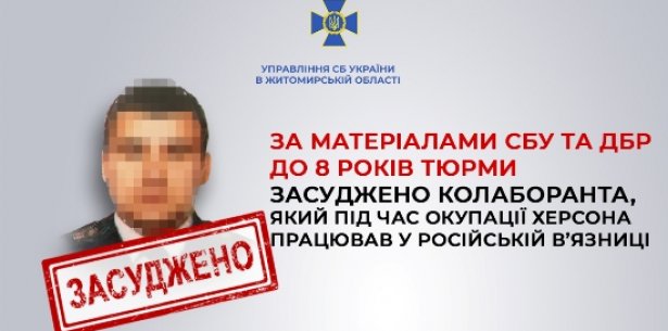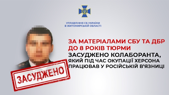 Завдяки доказовій базі Служби безпеки та ДБР реальний термін ув’язнення отримав 32-річний колишній посадовець «Північної виправної колонії №90», який пішов служити державі-агресору під час тимчасової окупації Херсонщини.