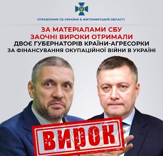 За доказовою базою Служби безпеки Корольовський районний суд м.Житомира визнав винними двох путінських чиновників, які фінансують окупаційні підрозділи армії рф у війні проти України.