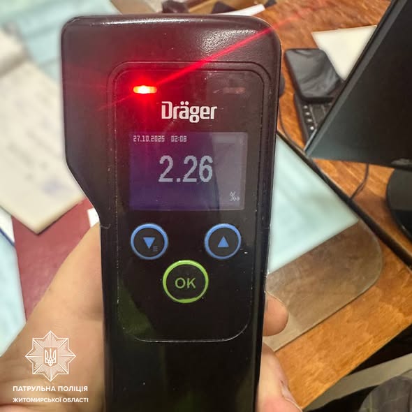 За минулу добу житомирські патрульні задокументували 7 фактів керування транспортними засобами з ознаками сп'яніння