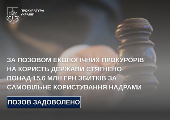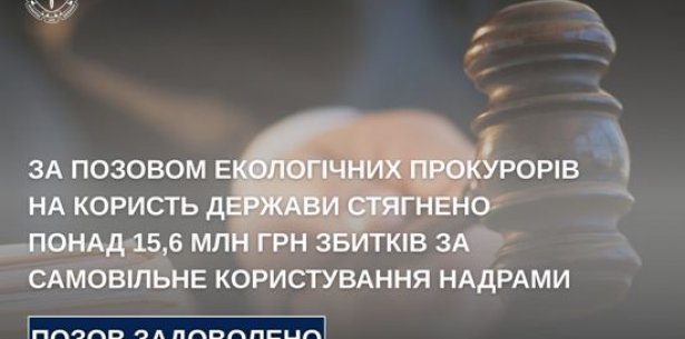 За позовом екологічних прокурорів на користь держави стягнено понад 15,6 млн грн збитків за самовільне користування надрами