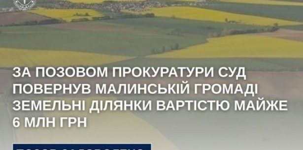 За позовом прокуратури суд повернув Малинській громаді земельні ділянки вартістю майже 6 млн грн