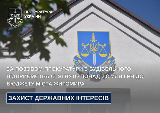 За позовом прокуратури з будівельного підприємства стягнуто понад 2,8 млн грн до бюджету міста Житомира