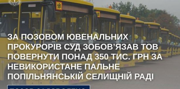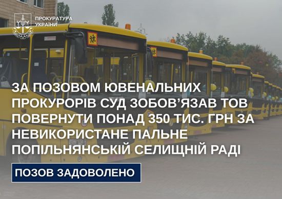 За позовом ювенальних прокурорів суд зобов’язав ТОВ повернути понад 350 тис. грн за невикористане пальне Попільнянській селищній раді