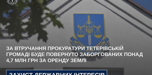 За втручання прокуратури Тетерівській громаді буде повернуто заборгованих понад 4,7 млн грн за оренду землі