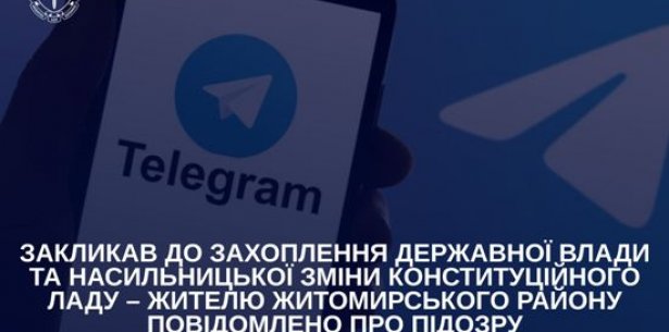 Житель Житомирського району протягом червня 2024 – травня 2025 року, коментуючи дописи у месенджері Telegram, неодноразово закликав до насильницької зміни влади, фізичного знищення Президента України та його оточення тощо.