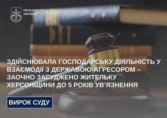Здійснювала господарську діяльність у взаємодії з державою-агресором – заочно засуджено жительку Херсонщини до 5 років ув’язнення